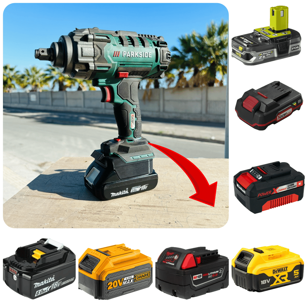 The Makita to Parkside X20 battery adapter allows customers to use their existing 18V Makita batteries with the extensive range of Parkside X20 tools.